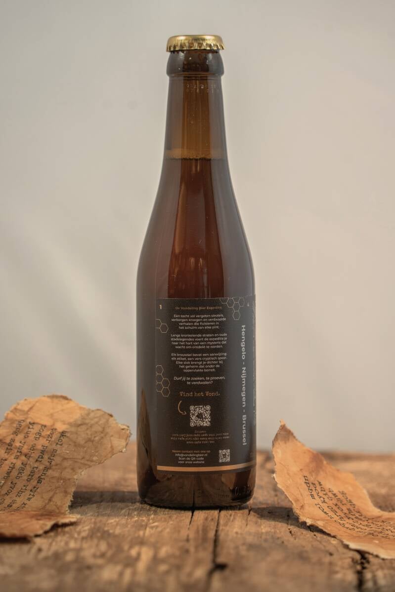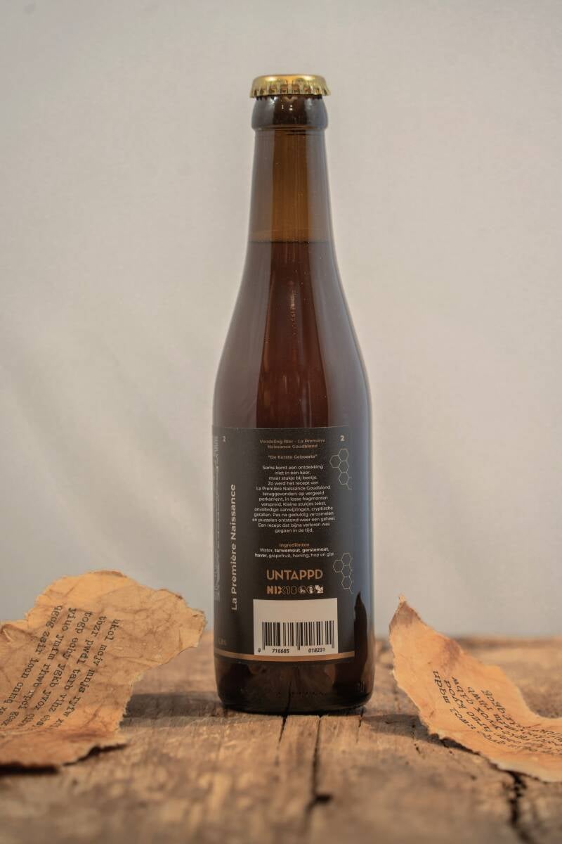 Zo werd het recept van La Première Naissance Goudblond teruggevonden: op vergeeld perkament, in losse fragmenten verspreid. Kleine stukjes tekst, onvolledige aanwijzingen, cryptische getallen. Pas na geduldig verzamelen en puzzelen ontstond weer een geheel – een recept dat bijna verloren was gegaan in de tijd.
